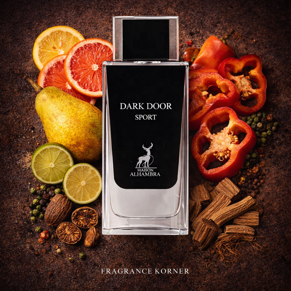 Découvrez Dark Door Sport de Maison Alhambra, une fragrance unisexe puissante, vibrante et magnifiquement contrastée.
